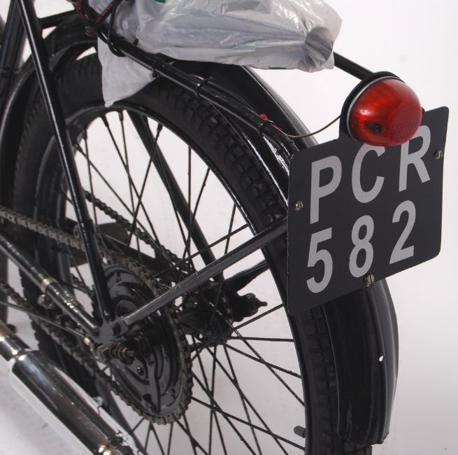 A rare New Hudson autocycle engine powered bicycle. Circa late 1940's / early 1950's, but first registered in 1993. Fitted with a 98cc Villiers Engine. Registration number; PCR 582. Comes with a wealth of history, including photographs, receipts, old V5's etc. Partly restored to a good standard, the engine has been rebuilt and restored, various other parts replaced. Vendor assures us it's in fully running and working order as has been well maintained in recent years. The original exhaust is included in the sale. A fabulous piece of motoring history.