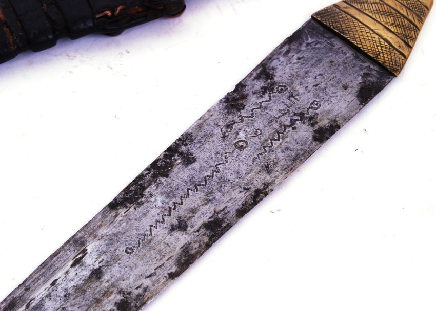 A rare early 20th century c1920's African / Nigerian Hausa double edged dagger. Original leather and brass scabbard. The dagger with brass handle and decoration to blade. POSTAGE: Worldwide postage / delivery available on all items. Combined postage available; UK £15.99+VAT, Ireland from £19.99+VAT, Europe from £19.99+VAT, USA / Canada from £30+VAT. Any other destinations please get in touch for a quote; info@eastbristol.co.uk. All quotes dependant upon location. Prices are per parcel (not per item).