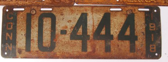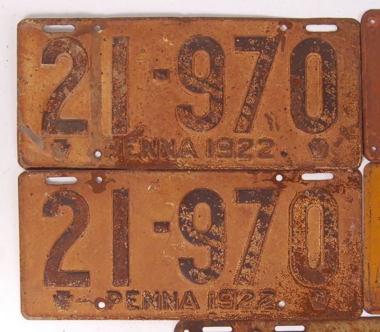 A collection of 5x vintage United States car registration number plates from 1918-1922 from states to include; Pennsylvania & Connecticut.