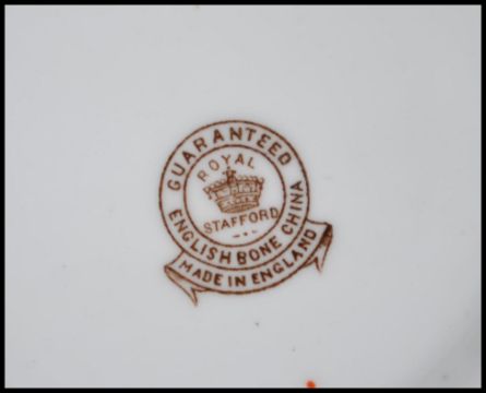 A Royal Stafford chintz pattern porcelain tea service comprising cups, saucers, plates, creamer and sugar bowl etc