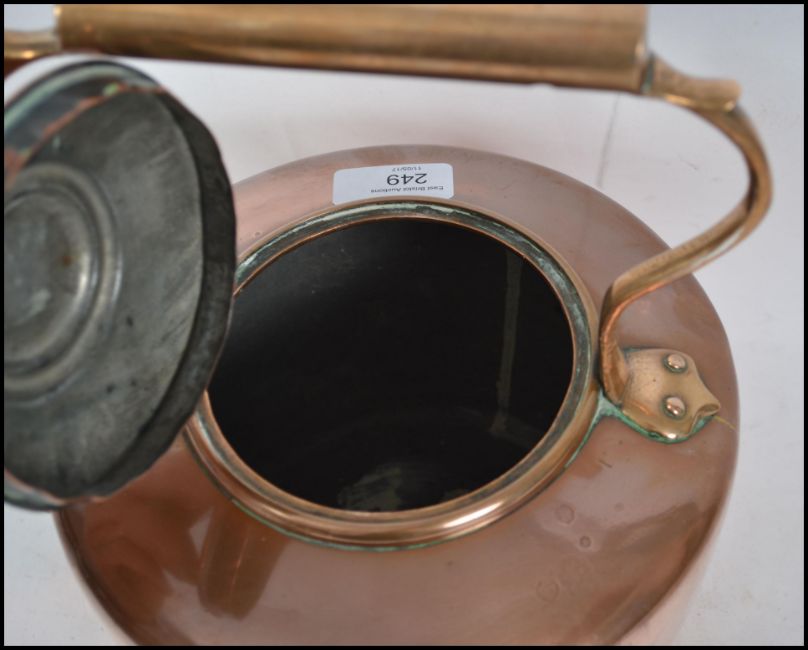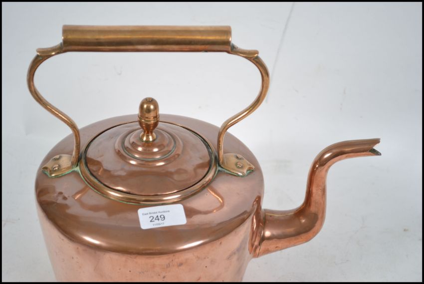 A 19th century EV Wilkes copper teapot of large form having impressed mark for Wilkes to the side. The teapot complete with the lid having shaped handle and spout