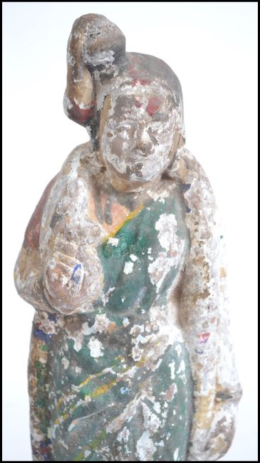 A 18th / 19th ? century painted clay figure of a Chinese / Indian lady. Measures 33cm high.