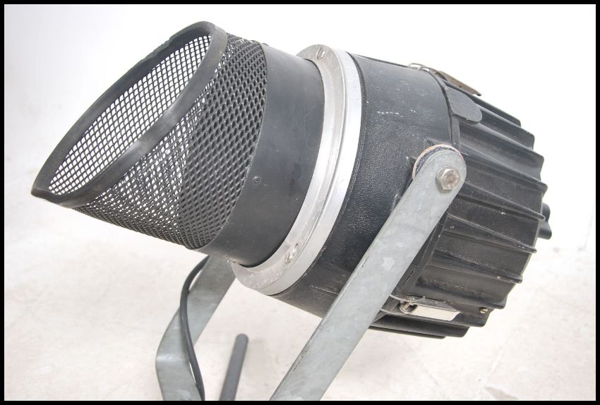 A good Industrial theatre / cinema spot light with large fish eye convex glass eye complete with the stand. Measures height 50cm x width 30cm x depth 50cm.