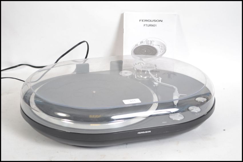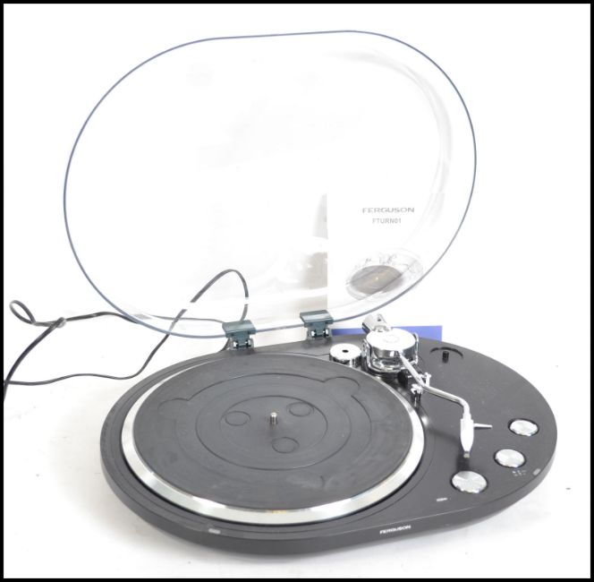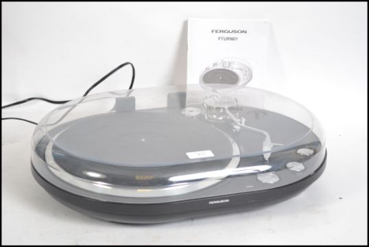 A retro looking Ferguson FTURN1 USB 2 speed record player with a smoked perspex top cover.