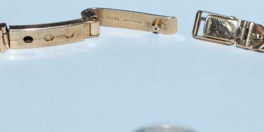 A vintage hallmarked 9ct gold Tissot Ladies cocktail wrist watch having a gold chevron style strap with original box and guarantee dated 1960. Total weight 18g.