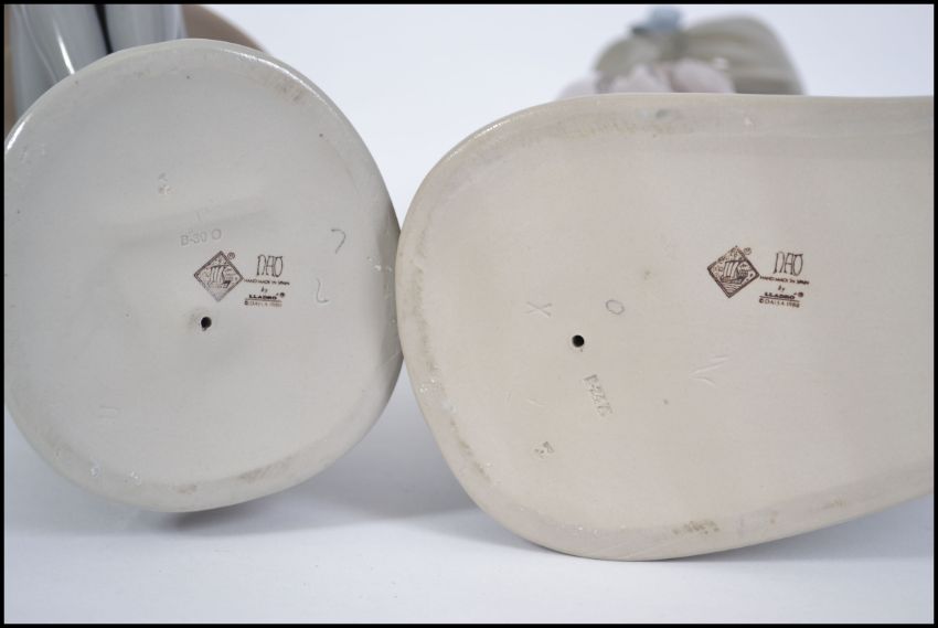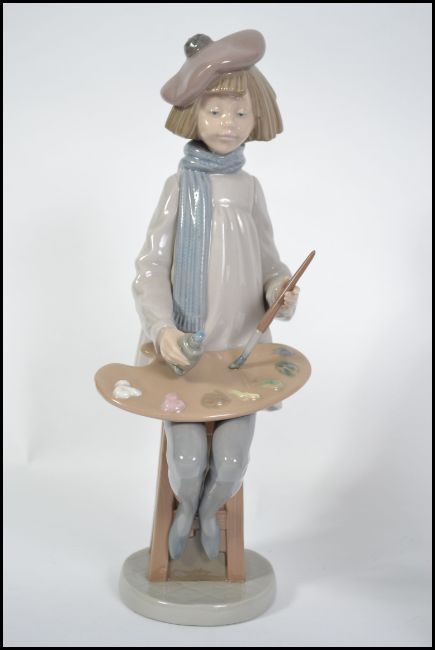 A large Nao figurine of a girl painting complete with easel and sat on stool marked to base and impressed B-24A together with another artist girl figurine B-30A. Measures 34cm high and 32cm high.