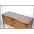 A 1950's post war Art Deco sideboard raised on serpentine supports having a bow front sideboard top with twin hinged doors opening to reveal storage within. Measures height 84cm x width 114cm x depth 46cm.