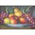 A still life oil on canvas painting of fruit in a bowl set to an ebonised ground on table and set within a gilt frame. Signed to the corner Kevin. Measures 45cm High x 60cm Wide