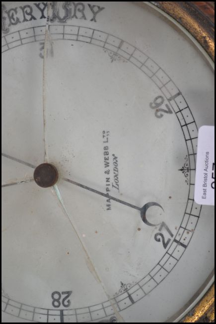 An early 20th century Mappin & Webb London wheel barometer in oak case with rope twist design. Milk glass dial with notation ( glass to front af)