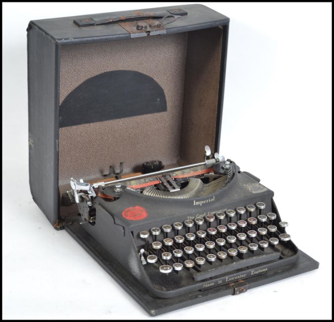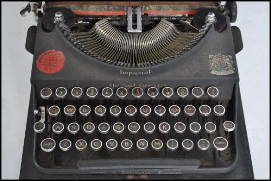 A vintage 20th century cased Imperial typewriter with notation stamp for WH Barrell LTD complete with original cleaning brush. Measures 31cm wide.