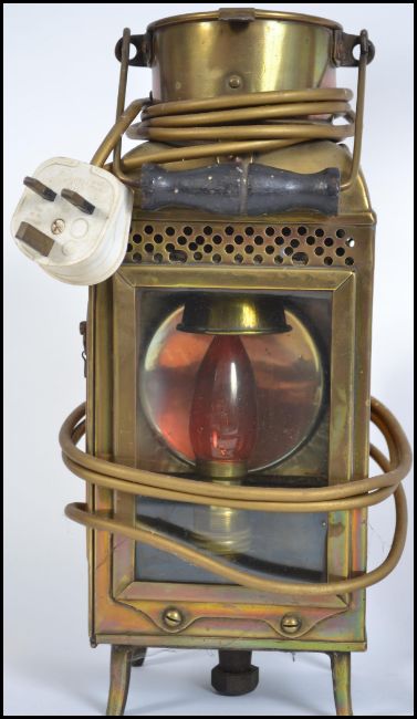 A vintage early 20th century brass carriage lamp by Eli Griffith converted to electric together with another lamp.