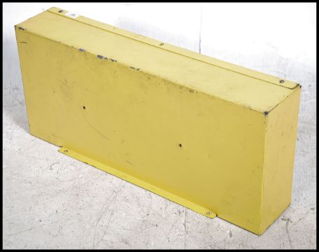 A retro 1197 Namco Arcade machine top mounted game light for ' Panic Park ' Yellow metal case with glass facia. Marked to the corner for Namco. Measures height 34cm x width 74cm x depth 16cm.