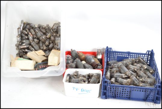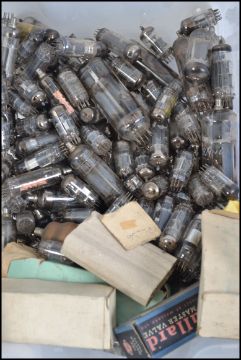 A collection of ex radio rental 1940s, 1950s and 1960s assorted radio valves of various sizes.