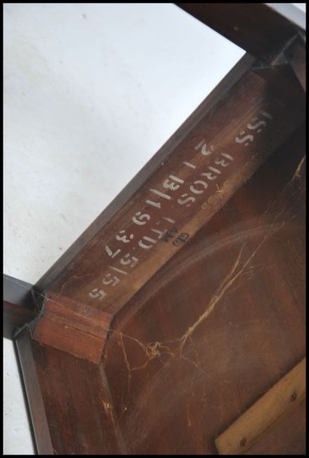 A 1950's Air Ministry mahogany games / card table by Liss Brothers 1955. Air Ministry marked and raised on mahogany sqaured legs with flip over table top having single drawer to the frieze