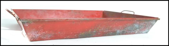 An unusual 20th century pressed metal Coca - Cola tray with central notation. The tray with raised sides and twin handles