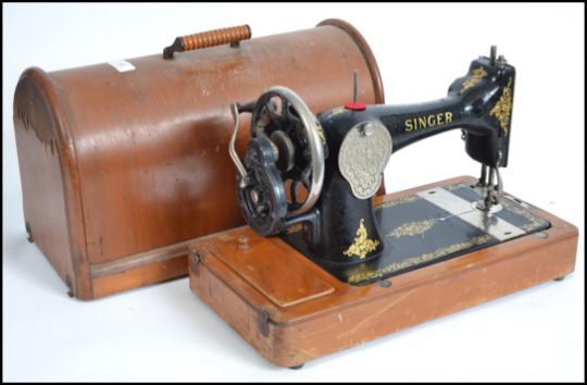 A cased vintage manual singer sewing machine together with a selection of sewing accessories.