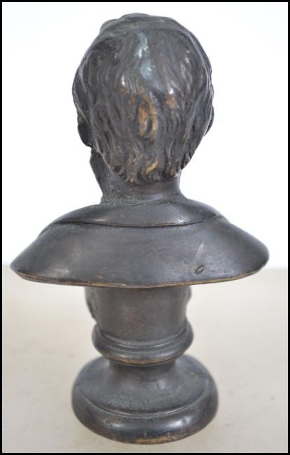 A good bronze bust study on plinth figurine of Galileo having notation to top of stand. Measures 11cms high.