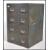 A retro mid century Industrial metal stationary cabinet of pedestal form having a series of 8 drawers with pulls and notation slides to each. Measures height 74cm x width 50cm x depth 50cm.