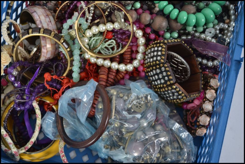 A collection of vintage and contemporary costume jewellery to include beaded necklaces, bracelets, etc. Please see images.