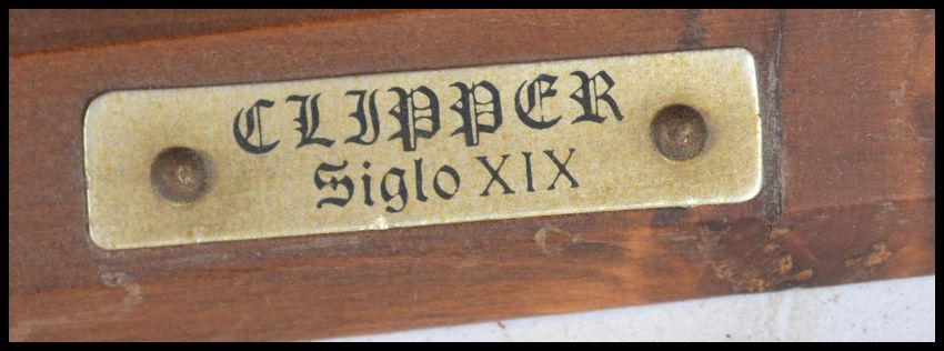 A 20th century retro model of a tall clipper sailing ship with notation plaque