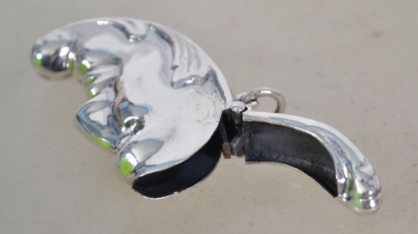 A 20th century silver plated half moon shaped vesta case. Measures 5cms high.