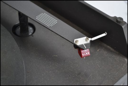 A 20th century NAD record deck model no S120 stereo turntable with unusual shaped case. Inset Goldring Elan stylus