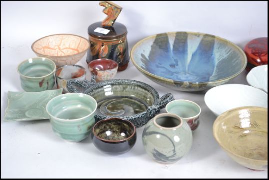 A good collection of vintage 20th century studio pottery to include bowls, pots, vases etc. Most pieces signed, please see images. The largest measures 30cm wide.