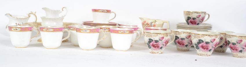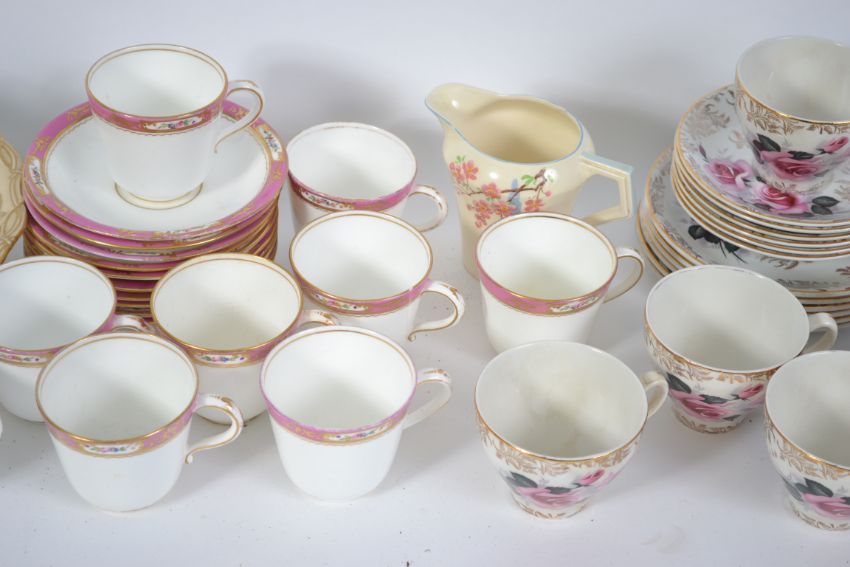A late 19th / early 20th century bone China tea service having hand painted decoration, together with a Royal Albert and a Royal Crown Derby creamer.