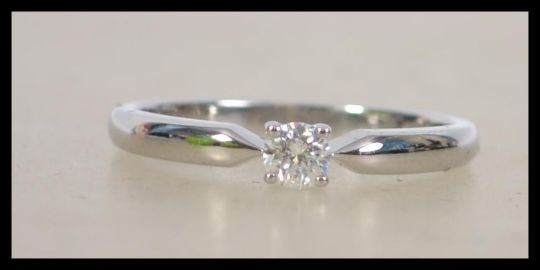 A ladies decorative 18ct white gold single stone diamond ring approx 25pnts 2.6 grams measures Q.