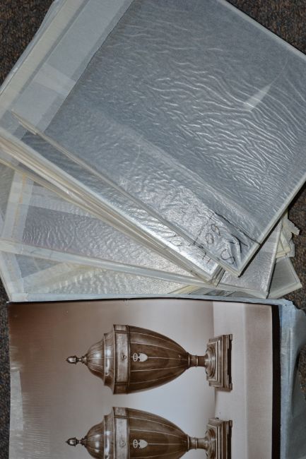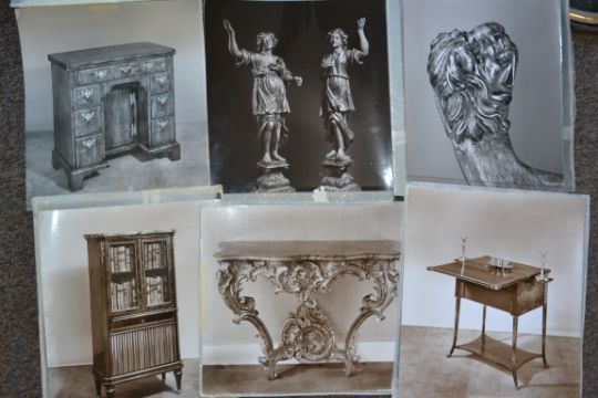 A collection of large glass plate negatives from the archive of photographer Raymond Fortt taken between 1950-1970 most being signed or stamped. Each one having a full sized print. Approx 200 in total. Measure 25cms  x 35cms. The negatives feature pictures of late 19th century and early 20th century furniture, fine art paintings and clocks from antique dealers 'Biggs of Maidenhead' established in 1866. These images were used in catalogues and for adverts in magazines such as The Antique Collector.