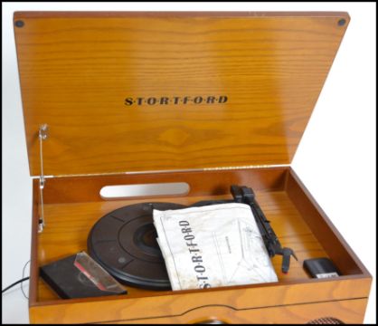 A retro style wooden cased hi-fi system by Stoford having record deck, radio and Cd player etc