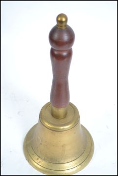 A large 19th / 20th century  school bell with turned timber handle and large basa