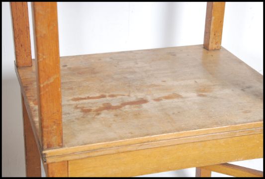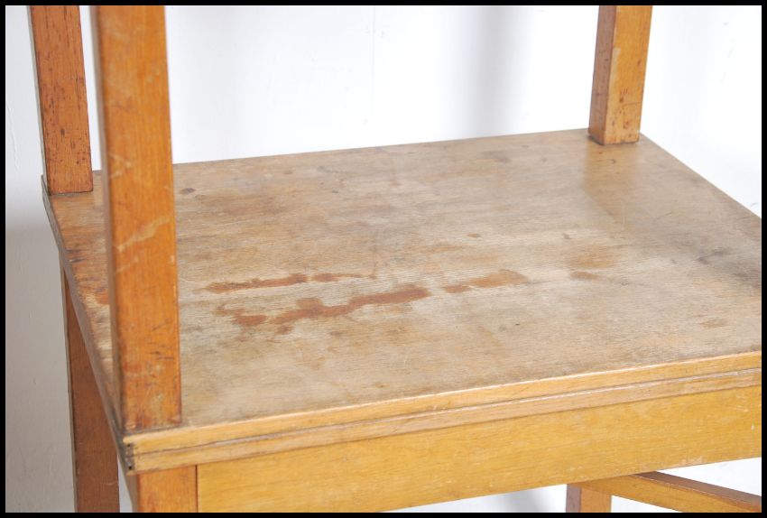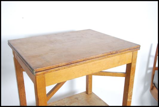 A pair of Mid century Air Ministry ( GRVI marked ) extending officers - mess dining tables raised on squared supports with flip over table tops believed to be ex RAF Lyneham. Matching further pair in lot 1219. Measures height 76cm x width 69cm x depth 84cm.