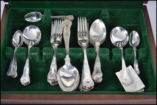 A good cased canteen of cutlery in the baize lined presentation case by Butler Cutlery in the Kings Pattern