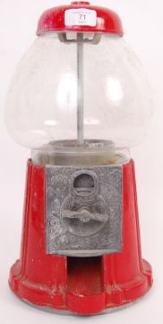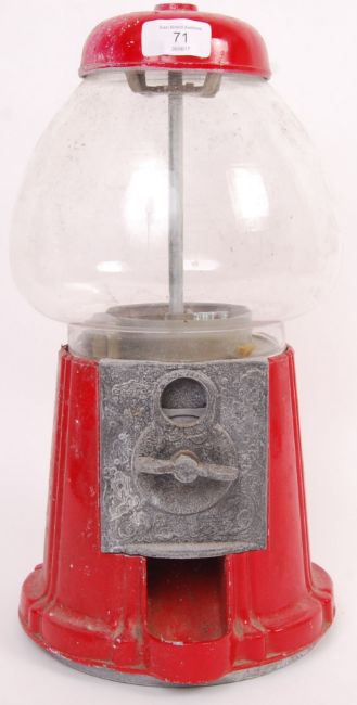 An original retro red glass topped red metal Jelly Bean Machine. Measures approx