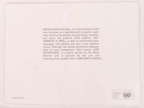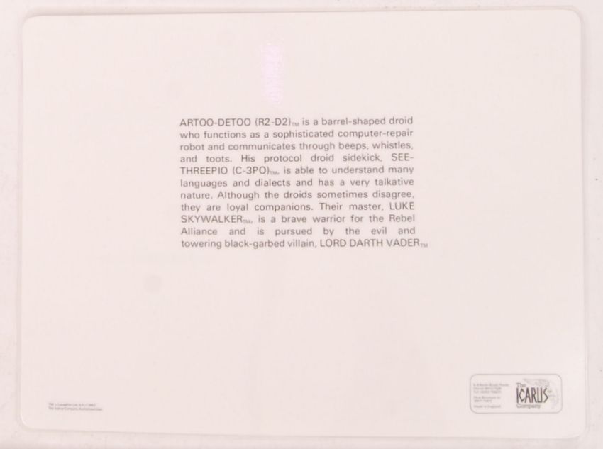 A large collection of original 1982 Karus Company Star Wars Place mats of C3PO & R2-D2. All laminated. Measures approx 41cm wide.