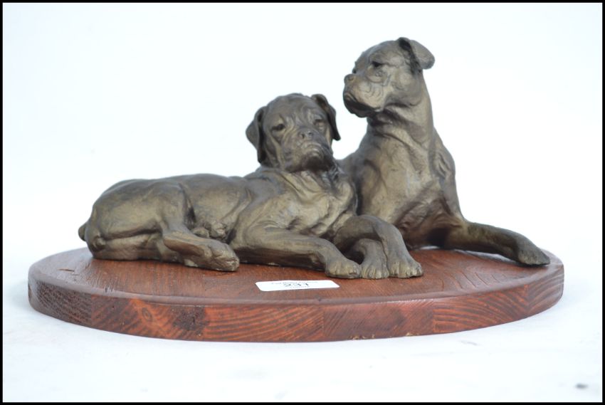 Doris Lindner: A bronzed composition sculpture figure of a two playful boxer dogs. Signed to the rear.