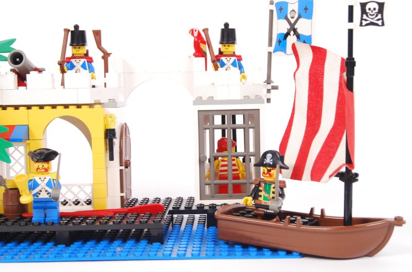 An original vintage LegoPirates made set 6267 Lagoon Lockup. Fully made, and appears complete. With instruction manual.
