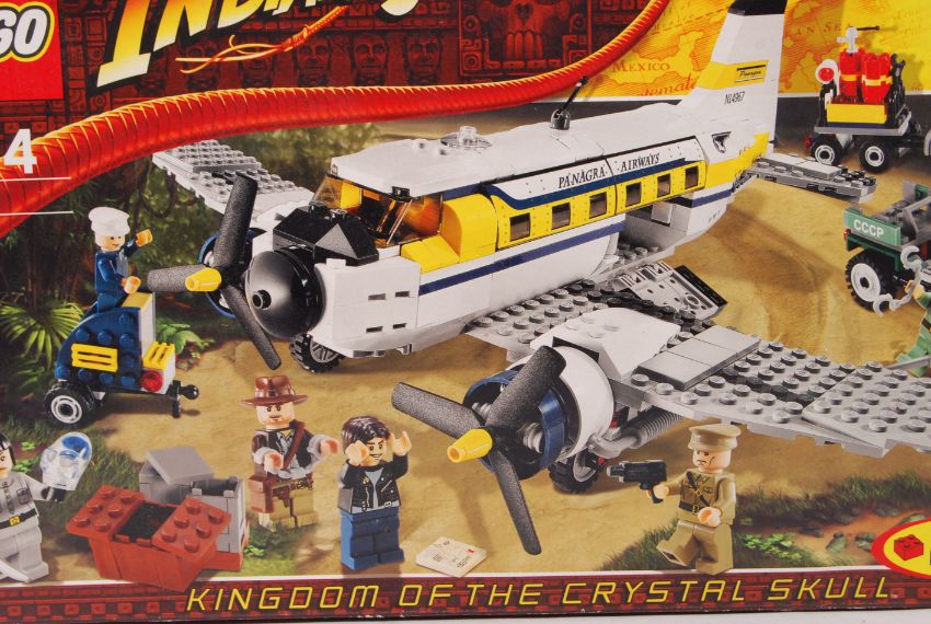 A Lego Indiana Jones set 7628 'Peril In Peru.' Factory sealed, unopened. Box crushing to top, but still completely sealed.