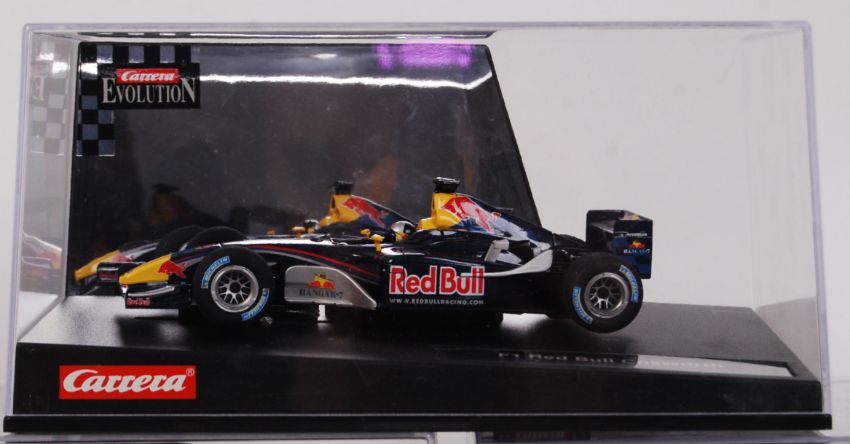 A collection of 3x original contemporary 1/32 scale Carrera Evolution plastic racing slot cars to include; 27112 F1 Red Bull Cosworth no15, 27111 F1 Red Bull Cosworth no14 & 25459 L Sauber Petronas C21 no7. All within their original plastic cases.