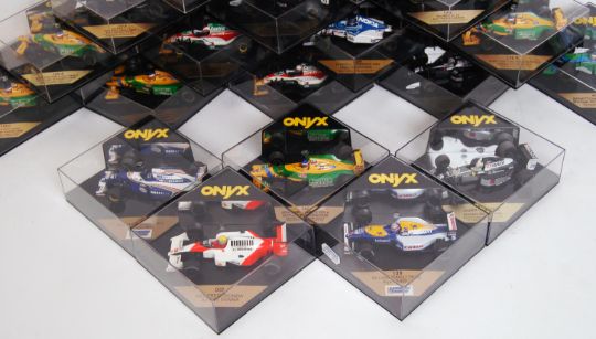 A collection of 20x original 1/43 scale ONYX diecast model F1 Formula One racing cars to include; 176A, 204, 239, 170B, 193A, 170, 167, 176E, 166, 162, 203, 169, 166, 194,193C, 176D, 176C, 139, 002 & 193B. Mint. All within their original plastic cases.