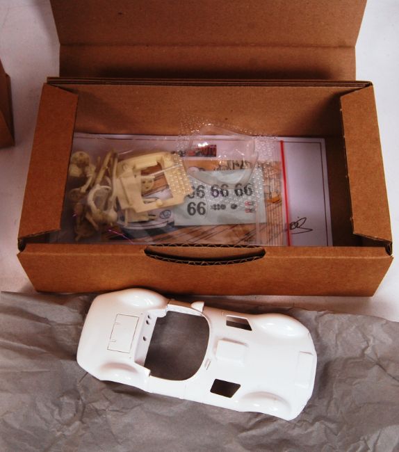 A collection of 2x original contemporary Proto Slot 1/32 scale resin plastic slot car model kits to include; CB047 FM375MM & CB064P Chaparral MK1 no 66 . Both appear complete & disassembled.