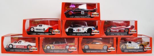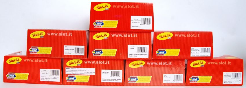 A collection of 8x original contemporary Slot it 1/32 scale plastic racing slot cars to include; SICA08 Lancia, CA09d Porsche, CA09c Porsche 956, CA03f Porsche, CA10A BMW McLaren, CA03 Lancia, CA10D McLaren F1 GTR & CA25 Porsche 962. All within their original boxes. Some sealed.