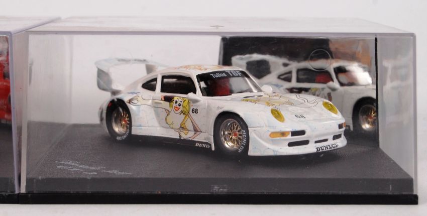 A collection of 2x original contemporary 1/32 scale Pro Slot plastic racing slot cars to include; PS1003 Porsche 911 GT 2 & PS1007 Porsche 911 GT 2. Both within their original plastic cases.