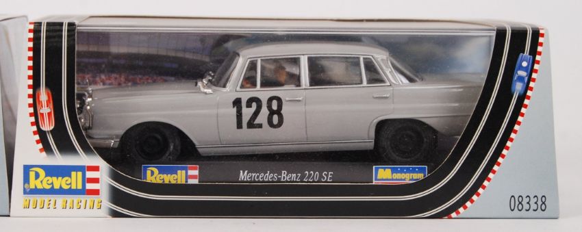 A collection of 2x original contemporary 1/32 scale 'Revell Model Racing' plastic racing slot cars to include; 08339 Audi Sport Quattro & 08338 Mercedes Benz 220 SE. Both within their original boxes with outer cardboard sleeves.