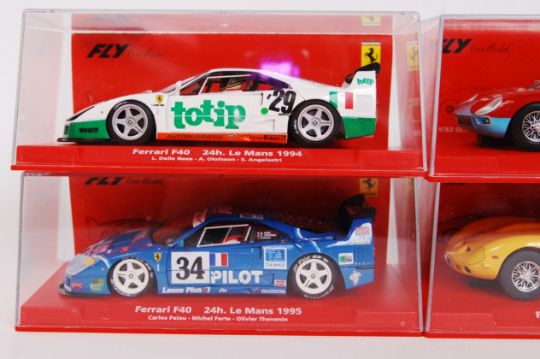 A collection of 4x original contemporary 1/32 scale Fly Car Model Ferrari Series plastic racing slot cars to include; 88314, 88284, 88321 & 88333. All within their original plastic cases.