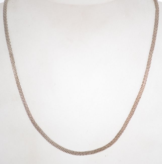 An Italian silver popcorn link necklace chain, having a lobster claw clasp. Marked Italy 925. Measures 18 inches and weighs 8.5 grams.
