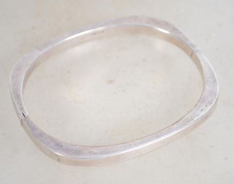 A sterling silver 925 bangle bracelet of oval form. Measure 7 cm wide and weighs 11.4 grams.