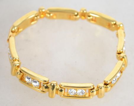 A gold tone Joan Rivers link bracelets set with clear rhinestones . Measures approx 7inches.