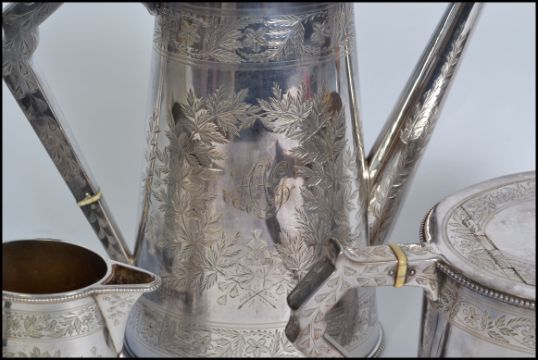 A good late 19th  / early 20th century Elkington & Co silver plated 4 piece tea / coffee service set comprising teapot, coffee pot, creamer and sugar bowl. All stamped to the base Measures 24cms high.